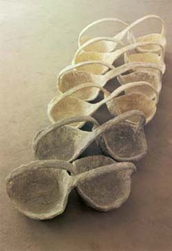 [...] Schalen- und löffelartige Formen, Schaufeln, Spaten, Eimer, Körbe, Schöpfgefäße machen das Repertoir der Künstlerin aus, Gerätschaften, die Handlungen assoziieren lassen, jedoch nichts davon im Sinne gegenständlicher Nachbildung, sondern als assoziativer Hintergrund für das Entstehen von Gebilden, die vertraut anmuten und an Bekanntes erinnern ohne mit solchem identisch zu sein. So haftet denn diesen Arbeiten etwas Geheimnisvolles an, ähnlich wie wir es empfinden, wenn wir in naturkundlichen Sammlungen mit der verwirrenden Vielfalt in Jahrmillionen gewordener und bewährter Erscheinungsformen des Lebendigen konfrontiert werden oder in Völkerkundemuseen die archaischen und prähistorischen Geräte bestaunen, die wir auf eine unmittelbare Weise „verstehen", weil sie uns auf elementare Weise verwandt sind: Nicht nur geläufigen Werkzeugen ähnlich, sondern uns selbst, zumindest partiell anthropomorph wie alles, was sich der Mensch zur Unterstützung seiner naturgegebenen Fähigkeiten und Funktionen erfunden hat. Und die doch rätselhaft bleiben, da wir nichts Genaues wissen über ihren Gebrauch und ihre - womöglich magische, kultische - Funktion und Bedeutung. Hannelore Weitbrechts Arbeiten sind naturhaft im angedeuteten Sinne. Nicht von ungefähr erinnern sie an Pflanzliches, Organisches, konkret an Früchte, Keime und Samenkapseln, an Knospen und Blüten, und damit auch an Vorgänge der Berührung, Begegnung und Befruchtung, an im weitesten Sinne Erotisches. Polare Spannungen kommen in diesen Arbeiten nicht allein durch die Verbindung körperhafter Elemente zum Tragen, sondern auch durch die naturhafte Balance von Fragilität und Vitalität. Alles erscheint transitorisch, prozeßhaft, erfaßt in jenem Übergang zwischen Werden und Vergehen, der charakteristisch ist für alles Lebendige.