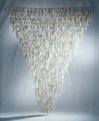 Keimen und knospen, wachsen und blühen - kaum etwas birgt mehr Hoffnung als naturhaftes Werden, immerzu und immer von Neuem. Die jüngeren Arbeiten von Hannelore Weitbrecht erinnern in ihrer Form, Farbigkeit oder auch ihrer Materialität oft an Pflanzliches, Organisches: an keimende Pflanzen, an sich öffnende Blüten. Ein raumgreifendes Werk wie "Wachsen", bei dem weiße Papierstreifen wie an einem Gitter hinaufwachsen, ergibt einen raschelnden Blättervorhang, der natürlich wirkt, ohne in der Natur so vorzukommen. Ähnlich wie die 32 Teile des Objekt "Aufrichten", die eine Vielzahl von Assoziationen zulassen: Halme oder Farne, die sich im Wind bewegen, Meeresalgen die vom Wasser gehoben und gesenkt werden, Agavenblätter, die sich verschieden dem Licht entgegenrecken, oder ganz undefinierbare weiße Wesen als eine Formation vorwitziger Individuen. Das Prozesshafte ihrer Bewegung und die Möglichkeit zur Veränderung stehen für die Prinzipien des Lebens - hoffnungsvoll. | ||||